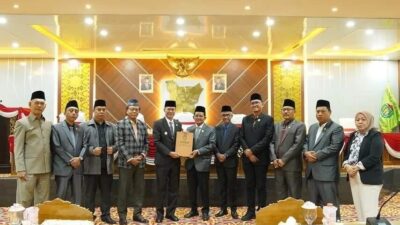 PENGESAHAN : Pj Wako Prabumulih, H Elman ST MM bersama Pimpinan DPRD mengesahkan KUA PPAS…