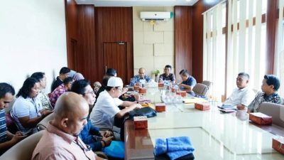 RAPAT : Pj Sekda, DR Drs Aris Priadi SH MSi kembali memimpin rapat bersama pihak…