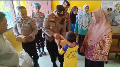 BAGI : Kapolsek Cambai, Iptu Yogie Melta SSos membagikan makanan gratis kepada anak yatim dan…