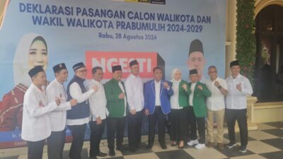 SAMBUT : Ketua-Ketua Parpol menyambut kedatangan H Mat Amin SAg di sela-sela Deklarasinya, Rabu. Foto…