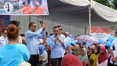 KAMPANYE : Cak Arlan dan Bang Franky kampanye di Lapangan Sepakbola Kelurahan Sungai Medang, Sabtu…