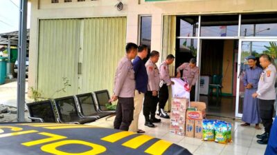 BANTUAN : Kapolsek Prabumulih Barat, Iptu Arafiq SIP menyerahkan bantuan buku ke PA Aziziyah dalam…
