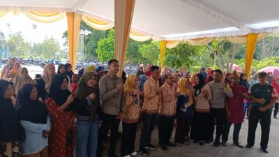 PASAR MURAH : Warga Desa Pangkul Jaya menyerbu Pasar Murah digelar Disperindag Prabumulih dibuka Staff…