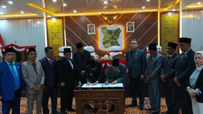 LAPORAN : Perwakilan Banggar DPRD Prabumulih, Feri Alwi SH menyampaikan hasil kerja banggar pembahasan KUA…
