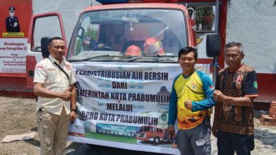 AIR BERSIH : Petugas BPBD Prabumulih menyalurkan 2 tangki air bersih ke Rutan Klas IIB,…