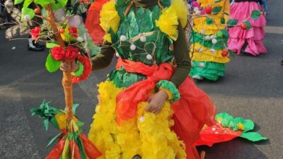 DAUR ULANG : Violeza Devian Zulko Putri, siswi SMPN 1 memanfaatkan bahan daur ulang buat…