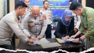 MOU : Kapolres Prabumulih, AKBP Witdiardi SIk MH bersama Pinca BSB, Meyza Hertati menandatangani MoU…