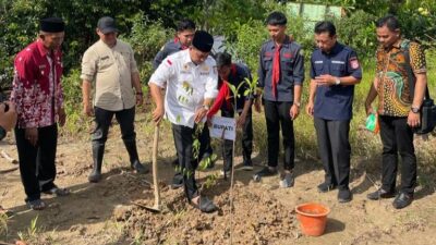 TANAM POHON : Bupati Banyuasin, H Askolani SH MH disaksikan Ketua dan Anggota BRIMPALS FH…