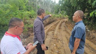 PERBAIKI : Mengerahkan 1 excavator, Cak Arlan dan Franky memperbaiki Jalan Tower masih jalan tanah…