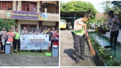 BAKSOS : Jajaran Polres Lahat membersihkan rumah ibadah dalam rangka HUT Bhayangkara 78, Kamis. Foto…