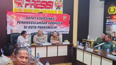 VIDCON : Kapolres Prabumulih, AKBP Witdirardi SIk MH memimpin rapat vidcon bersama Forkompinda dalam kegiatan…