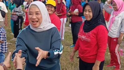 SILATURAHMI : Ngesti Ridho senam bersama warga Sidogede di Lapangan Kerbau Jalan Mayor Iskandar, Selasa…