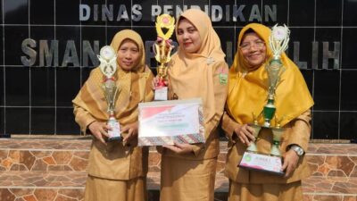 JUARA : Perwakilan SMANTI Prabumulih menerima penghargaan juara II karnaval tingkat SMA diserahkan Wawako, H…