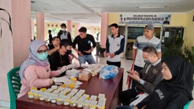 TES URINE : Pegawai Dishub Prabumulih dites urine petugas BNN dalam rangka P4GN, Jumat. Foto…