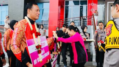 TIBA : Tim Voli Putri Sriwijaya tiba di Palembang langsung ke Mapolda Sumsel, Kamis. Foto…