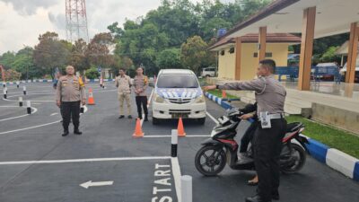 LIHAT : Kapolres Prabumulih, AKBP Witdiardi SIk MH melihat langsung masyarakat ujian praktek SIM C…