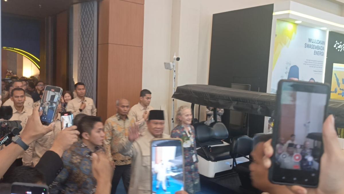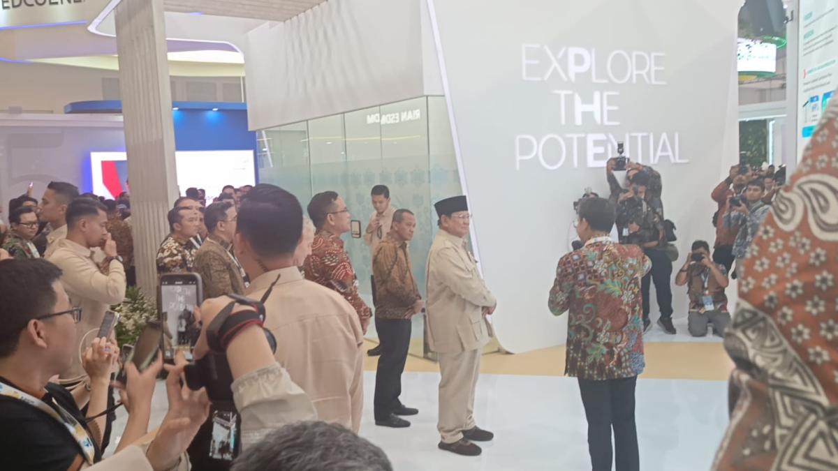 TINJAU : Presiden RI Prabowo Subianto meninjau both PHE pertama kali usai membuka IPA Convex 2025 di ICE BSD City, Rabu. Foto : Rian/FAJARSUMSEL.COM
