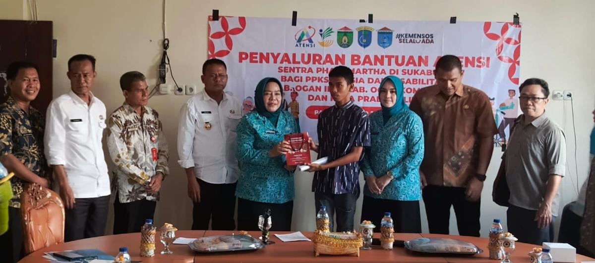 Kadinsos Prabumulih, Drs A Heriyanto MM, menjelaskan bahwa kegiatan ini merupakan penyaluran bantuan ATENSI tahap ketiga dari Sentra Phalamartha Sukabumi.