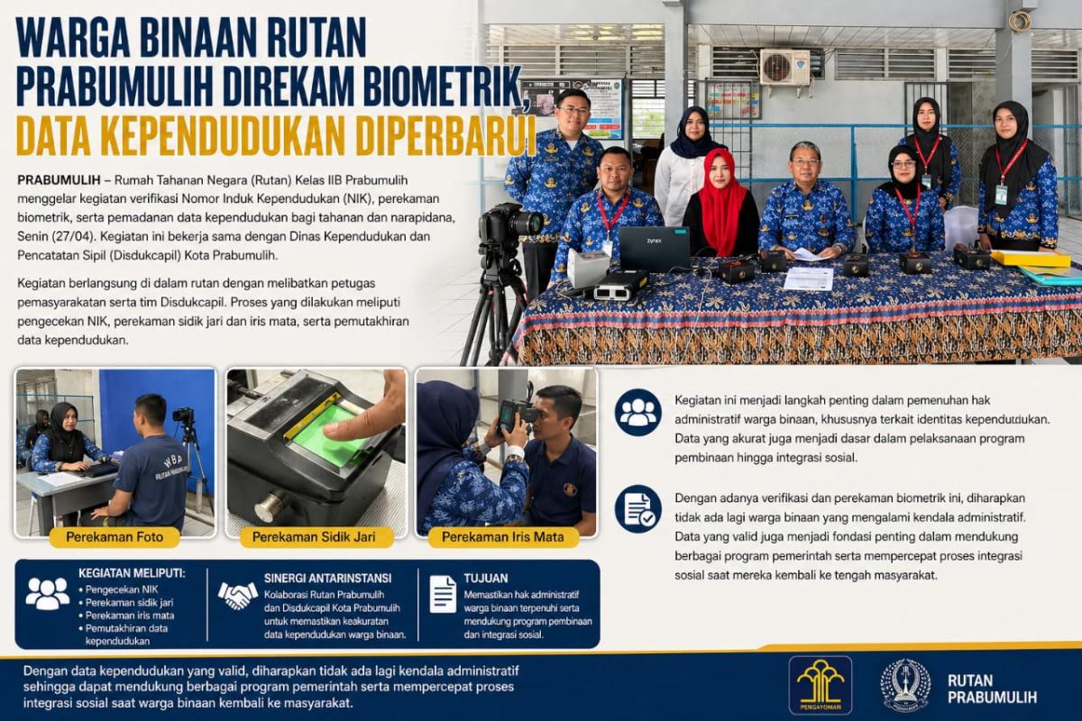 Kegiatan ini terlaksana berkat kerja sama dengan Dinas Kependudukan dan Pencatatan Sipil Kota Prabumulih sebagai bentuk sinergi antarinstansi dalam memastikan keakuratan data warga binaan.