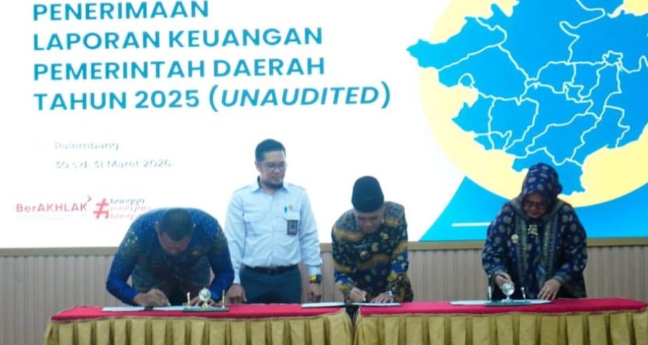 PALEMBANG, FAJARSUMSEL.COM – Pemerintah Kota Prabumulih kembali menunjukkan komitmennya dalam mewujudkan tata kelola keuangan yang transparan dan akuntabel. Wakil Wali Kota (Wawako) Prabumulih, Franky Nasril, secara langsung menyerahkan Laporan Keuangan Pemerintah Daerah (LKPD) Tahun 2025 (unaudited) kepada BPK RI Perwakilan Sumatera Selatan, Senin (30/3/2026) di Palembang.